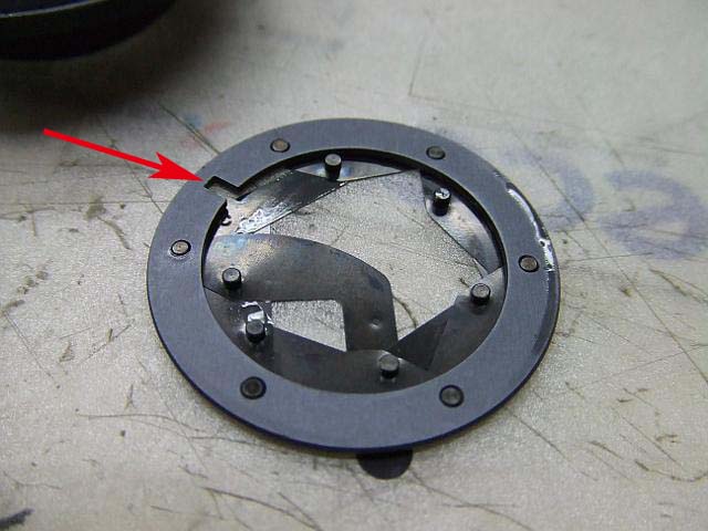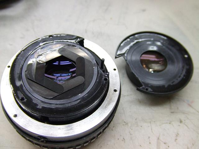 このレンズの不具合はと言うと、以前レストアした「フレクトゴン35mm」と同様、絞りが全く動いていません。
