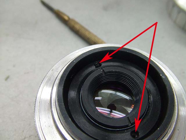 見てみると、ピントリングの側面にはリングの位置決め用のイモネジが入っています。