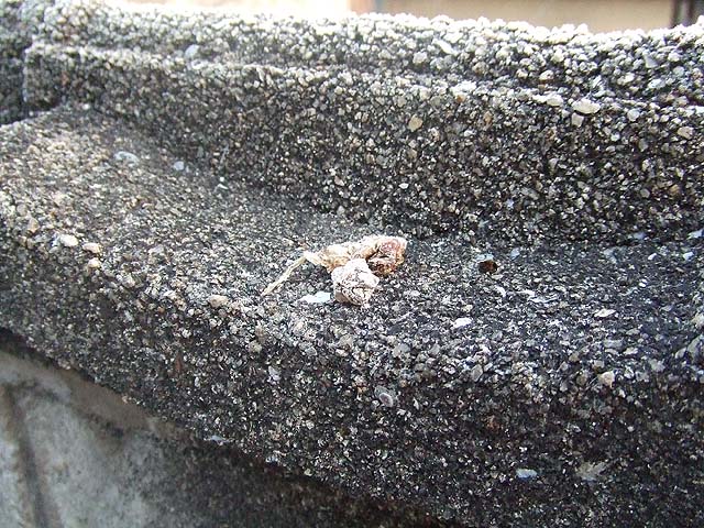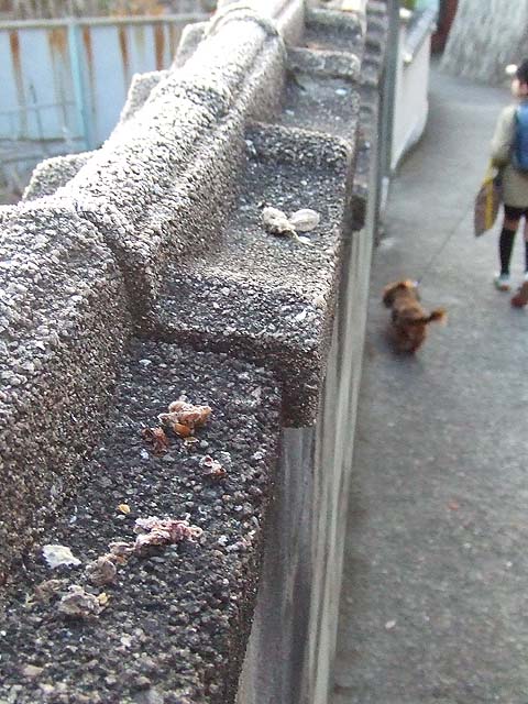 家の近くのブロック塀には、鳥が置いて行ったのか、植物の種のようなのが転がっていて、ブロック塀と一緒に霜をかぶっていました。