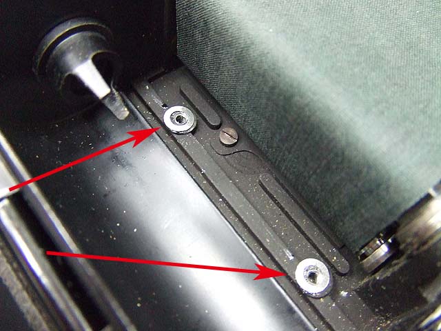 まずはマウントの上側の貼り革をはがして、その下にある2本のマイナスネジを外しましょう。