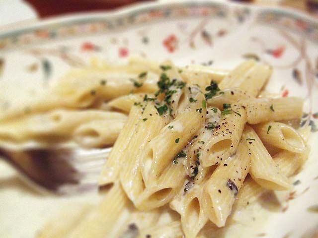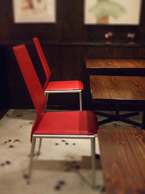 ここの料理は個人的には好きなタイプです。 シェフはファンダンゴにもおられたことがあるようですが、ファンダンゴの味とはちょっと種類が違います。 オーナーシェフになられて独自の味の追求をされているのでしょうか。 で、話題のガーリックトーストですが、 外はカリッと香ばしく、中はふんわりして少しだけもっちり感があります。 そこにガーリックの香りが加わって、おいしいガーリックトーストになっています。 なるほど、妻がおいしいと言っている通りですね。 妻情報によると、このパンは西山亭からそう離れていないサンモルテのパンなんだそうです。 以前サンモルテのパンが食べたいと言っていたのは、こんな理由もあったんですね。 で、食事の方はと言うと、色々と頼んだんですが食欲が先に立って、写真をほとんど撮っていません。 ちなみにうちの子は例によってペペロンチーノ。 私が食べたのは ボンゴレロッソ。 見た目は貝殻が有った方がいいのでしょうが、食べるには不便ですので身だけにして欲しい。 でも調理方法上こうなってしまいますか。 とは言えこのボンゴレロッソ、おいしいですよ。 アサリの香りとトマトの酸味がベストマッチです。 妻が食べたパスタは、 ペンネのクワトロフォルマッジでしたっけ? 4種類のチーズを使ったやつです。 これもおいしそうです。 で、食べ物の写真はこれだけなんですが、店内の雰囲気をいくつか撮りましたのでご紹介しましょう。 こちらのお店は和のテイストが入っていることもあって、箸も用意されています。 テーブルの横においてあったマスコット。 イスとテーブルもいい感じです。 手ブレをシャープとボカシでごまかしました。 今回掲載した写真は、全てフォトショップでボカシを入れてみました。 言ってみればアオリ風です。 ミニチュア効果と言った方が分かりやすいでしょうか。 コンデジで撮った写真もこんな風に手を加えれば、より楽しい写真になりますね。 ただしやり過ぎは逆効果ですが… 皆さんもぜひお試し下さい。 いや、今回の話題は西山亭でした。 皆さんも食べに行ってみてはいかがでしょうか。 そうそう、それと、もうすぐカウンターが「33333」になります。 キリ番設定しておりますので、キリ番ゲットを狙ってみて下さい。 記念品も用意する予定です。