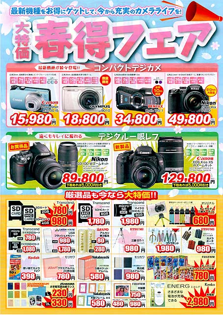 デジカメ特価販売や、各種用品もお買い得価格でご案内しております。