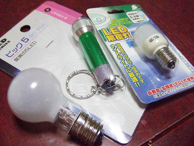 今月1日に自転車のダイナモライトをLED化改造をしてちょっと悦に入っていますが、それに気をよくして家庭用の電球も低価格でLED化できるのかの実験です。