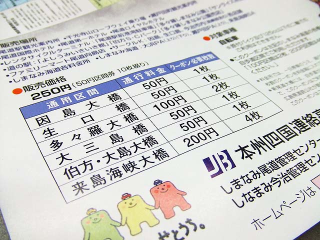 でね、自転車でしまなみ海道を渡る時って言うのは無料じゃないんですよね。