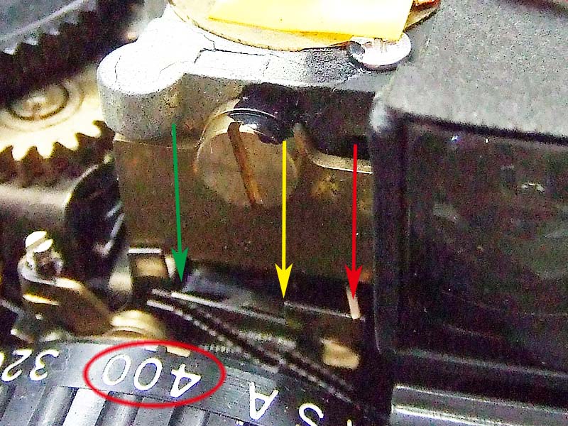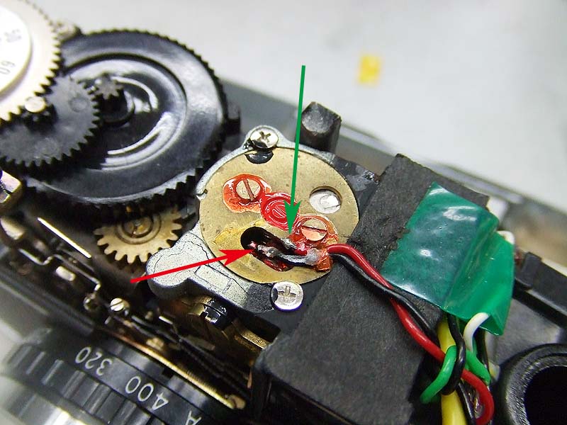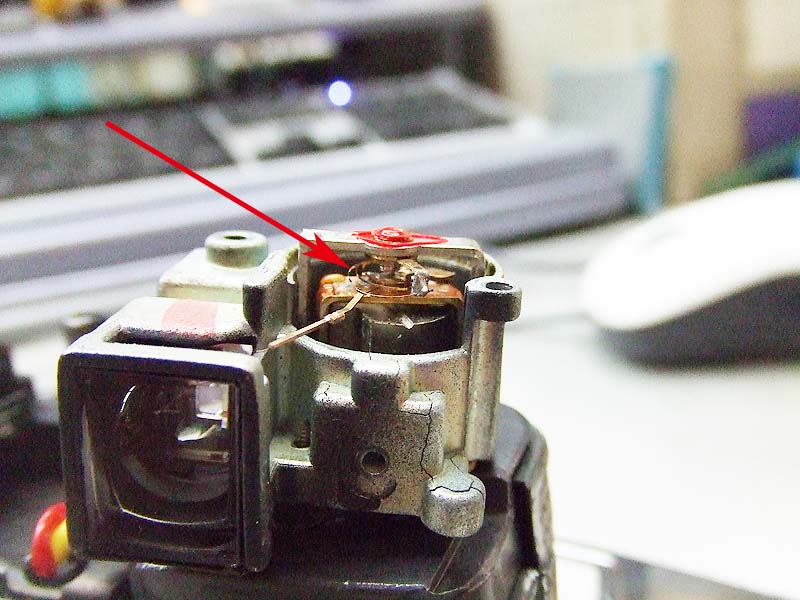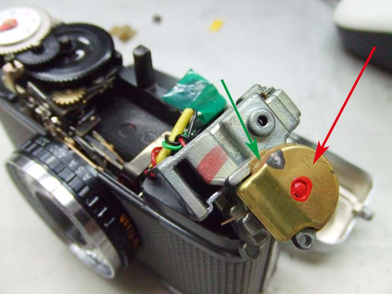 軍艦部カバーを開けて、緑矢印の部分に光を当てたり、手で覆ったりして、赤矢印の針が動いていればほとんど正常です。