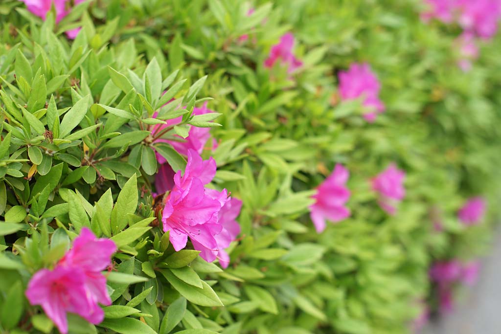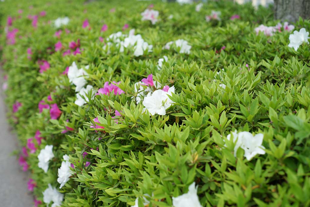 校門に入ってすぐのところには、ツツジが咲いています。