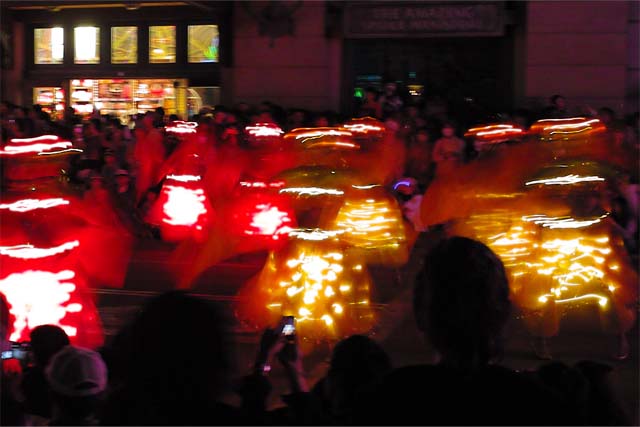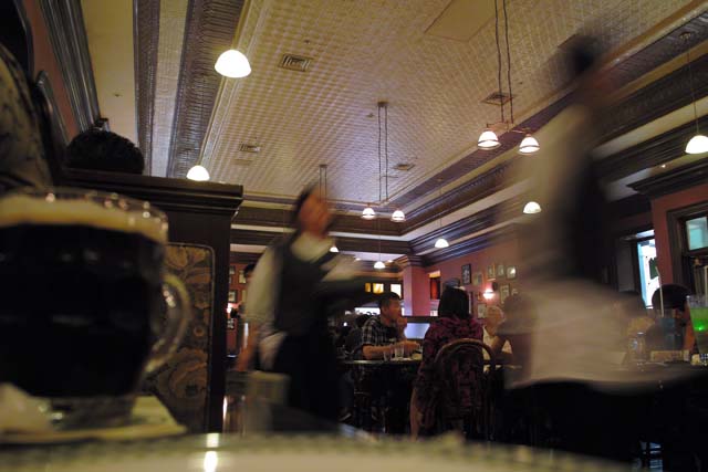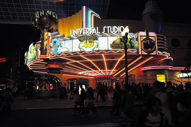 このパレードは、簡単な山車が何台か来て数分で終わるんだろうと思っていたんですが、そうではなく、 でっかい山車が何台でしょう、30台ぐらいかな?次々と出てきます。 でっかいのだけじゃなく、人間サイズのも沢山踊りながら一緒に行進して。 いやー、見ごたえありました。 今度は望遠持って行って、ダンスしている人たちを写してみたいですね。 しかし、USJの夜はMSPだけじゃありません。 街並みも非常にきれいになります。 昼間とはまた違った雰囲気で楽しいです。 三脚が無いのがとても残念。 子供向けアトラクションも、 なんだかラスベガスみたいな感じになってしまいます。 R指定のレイトタイムパスとかあるといいかもしれません。既にあるのかな? よく知りません。 ここのレストランは「フィネガンズバー&グリル」 家族でボックス席に座って楽しむもよしですが、 カウンター席で酒を飲むのがグーな感じです。 個人的にはもっと大人向けな、「ゴッドファーザー」か「ワンスアポンアタイムインアメリカ」のようなマフィア系の雰囲気のバーがあるとなおいいと思いました。 エンターテインメントではなく、リアルな演出があると楽しそうですね。 映画の中に入り込んでしまったような。 そんなUSJにしてくれないかなぁ。