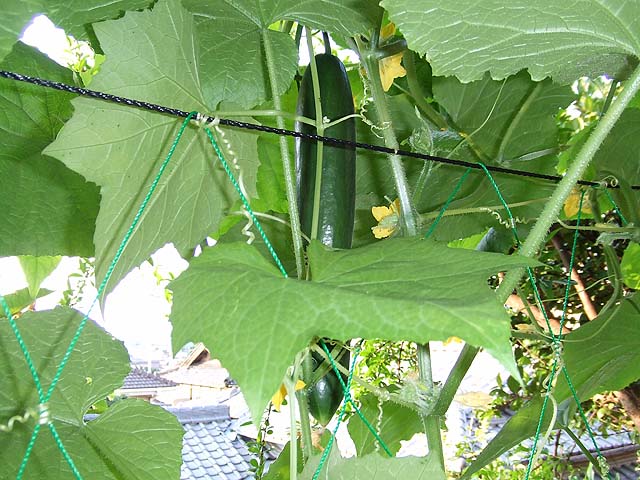 うちの庭に植えたキュウリとヘチマとゴーヤーはすくすくと育っておりますが、中でもキュウリの成長の仕方が比較にならないほどの猛威をふるっております。