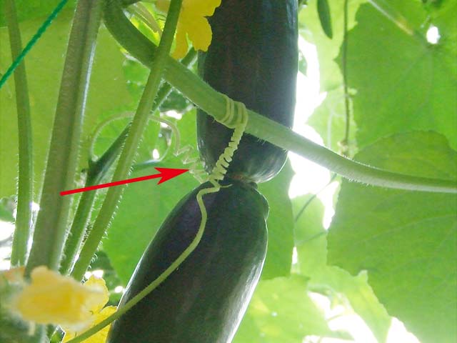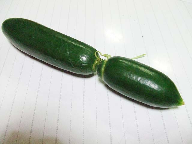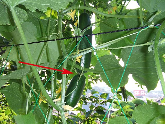 それがこちら、この角度からだと立派に実ったキュウリに見えますね。