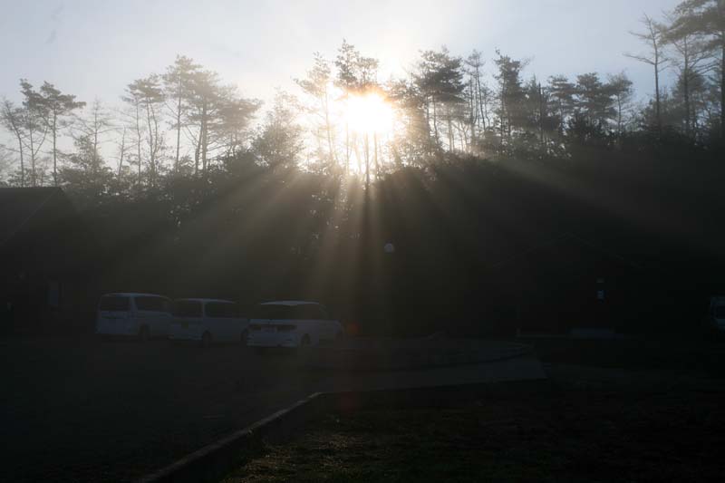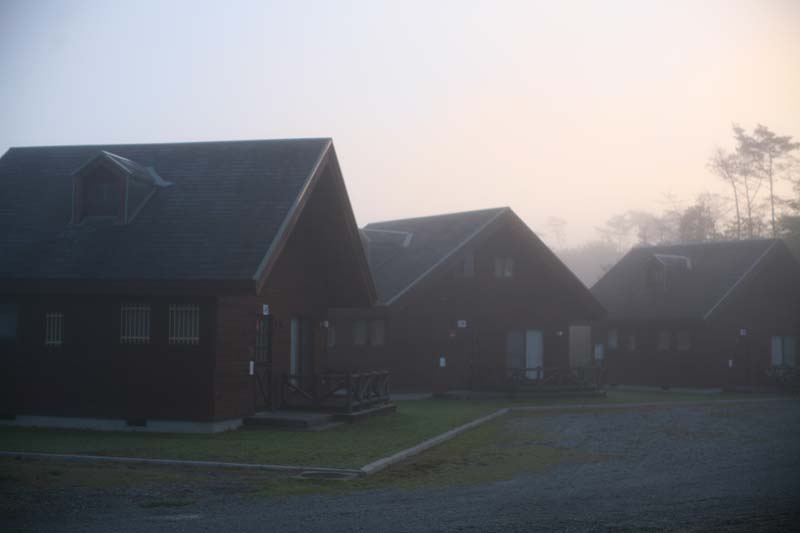キャンプサイトのすぐ近くにあるバンガローまででも霞んで見えます。