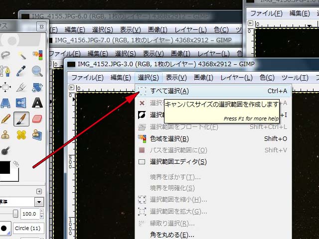 ということで、フリーソフトの「GIMP」を使ってできないかという話がありましたので、試しにやってみることにしました。